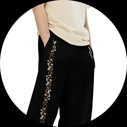Tango Casual Pants - Burnt Copper & White decoration - Wide Leg Unisex Black Pants | 1056