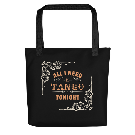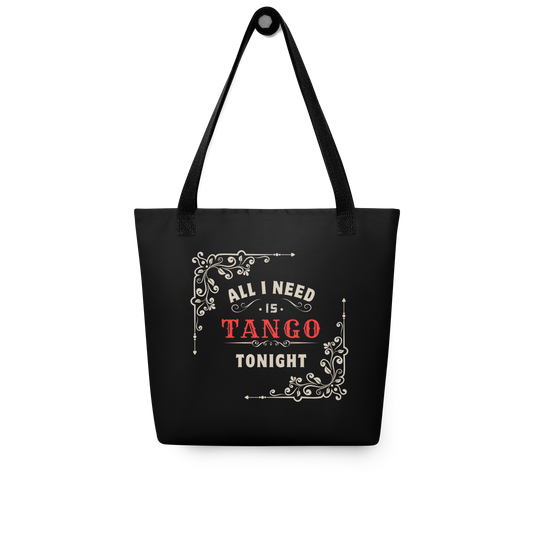 Tote bag - All I Need Is Tango Tonight - Black tote, Black Handles, White decoration on frontside | 8050