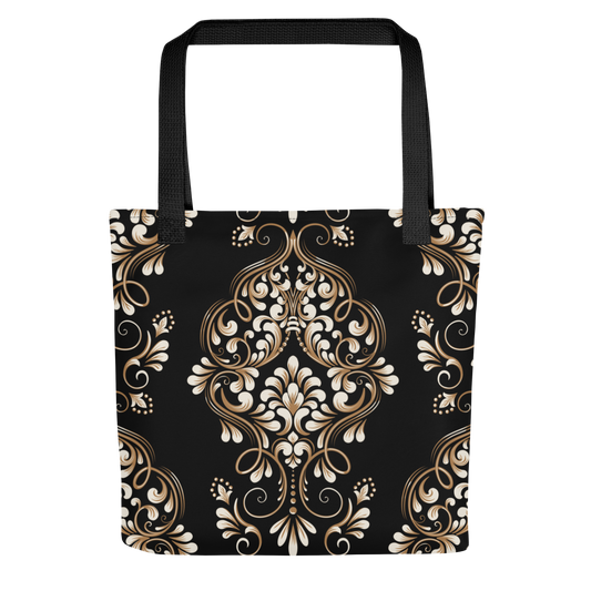 Tote bag - Tango theme - Ecru Bronze decoration - Black tote bag, Black handles, Both sides print | 8056