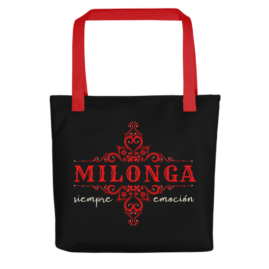 Tote bag - Tango theme- Milonga - Black tote, Red Handle, Red decoration, Red medallion on the back side | 8067