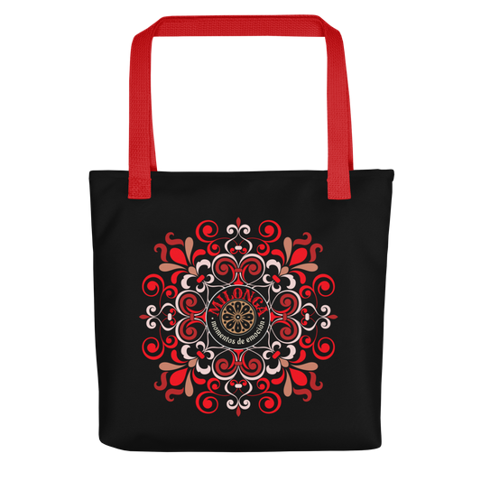 Tote bag - Tango theme- Milonga - Black tote, Red Handle, Red medallion decoration | 8068